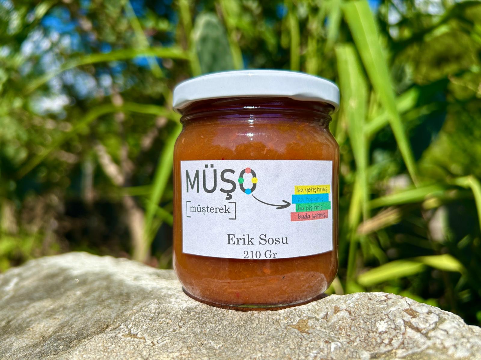 Erik Sosumuz İşlevsel Ormanlar Gocakemer Uygulama Arazisinde yer alan kırmızı yerli eriklerimize az miktarda şeker, yine aynı arazimizden hasat ederek ürettiğimiz hünnap sirkesi ve sarımsak ilavesi ile hazırlandı.