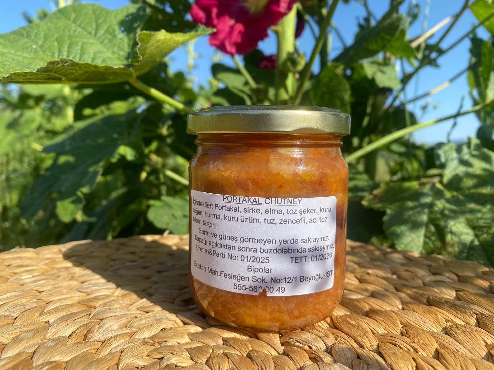 Çalca Uygulama Arazimizin portakalları ve meyvelerimizden elde ettiğimiz sirkeyi kulandığımız chutney ürünlerimiz içerisinde dış kaynaklardan satın aldığımız, elma, hurma, kuru üzüm, zencefil, soğan, acı toz biber, tarçın ve toz şeker bulunmaktadır.