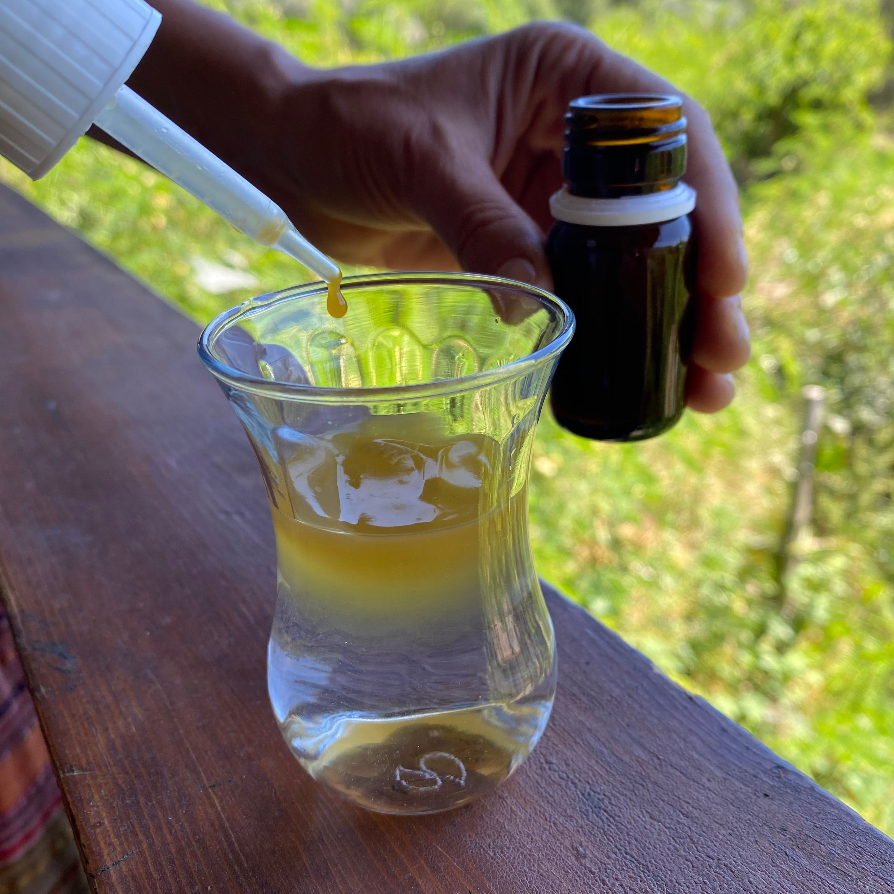 Çalca Uygulama Alanımızda yetiştirdiğimiz zerdeçallarımızı taze ve toz formunda destekçilerimiz ile paylaşıyoruz. Kuruttuğumuz zerdeçallarımıza, karabiber, alkol ve su ilave ettikten sonra karanlık bir ortamda, haftada 3 defa karıştırarak, 8 -10 hafta beklettikten sonra süzüyoruz. 1:10 zerdeçal:karabiber, 1:5 alkol:su oranlarını kullanarak hazırladığımız zerdeçal tentürünün sindirim sistemi ve bağışıklığı destekleyici olarak kullanıldığı biliniyor. Güncel araştırmalar zerdaçalın antioksidan ve anti-inflamatuar etkilere sahip olduğunu, kalp hastalıklarına karşı koruyucu etki gösterdiğini ve depresyona karşı koruma sağladığını belirtmektedir.